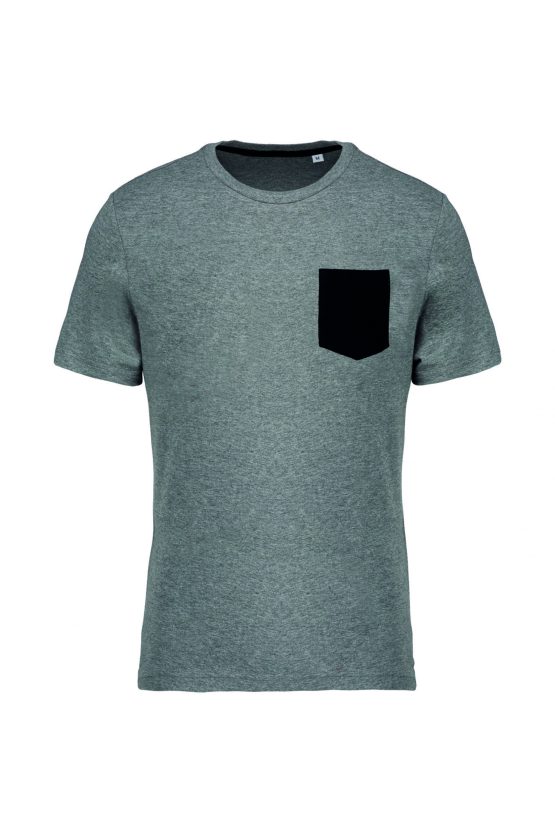 Effen kleuren: 100% katoen. Kleur Grey Heather: 70% katoen / 30% viscose. Alle kleuren zijn gemaakt van biologisch katoen. Ronde hals in ribboord. Contrasterende borstzak aan de linkerkant. Contrasterende zijsplitten en nektape in de kraag. Dubbel stiksel aan mouwuiteinden en onderkant. Geen merklabel in de kraag, maar enkel een maatlabel voor eenvoudige personalisatie.