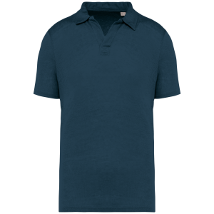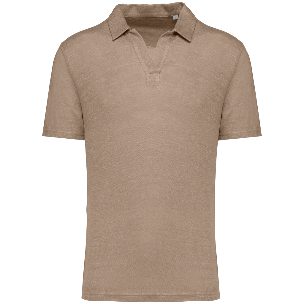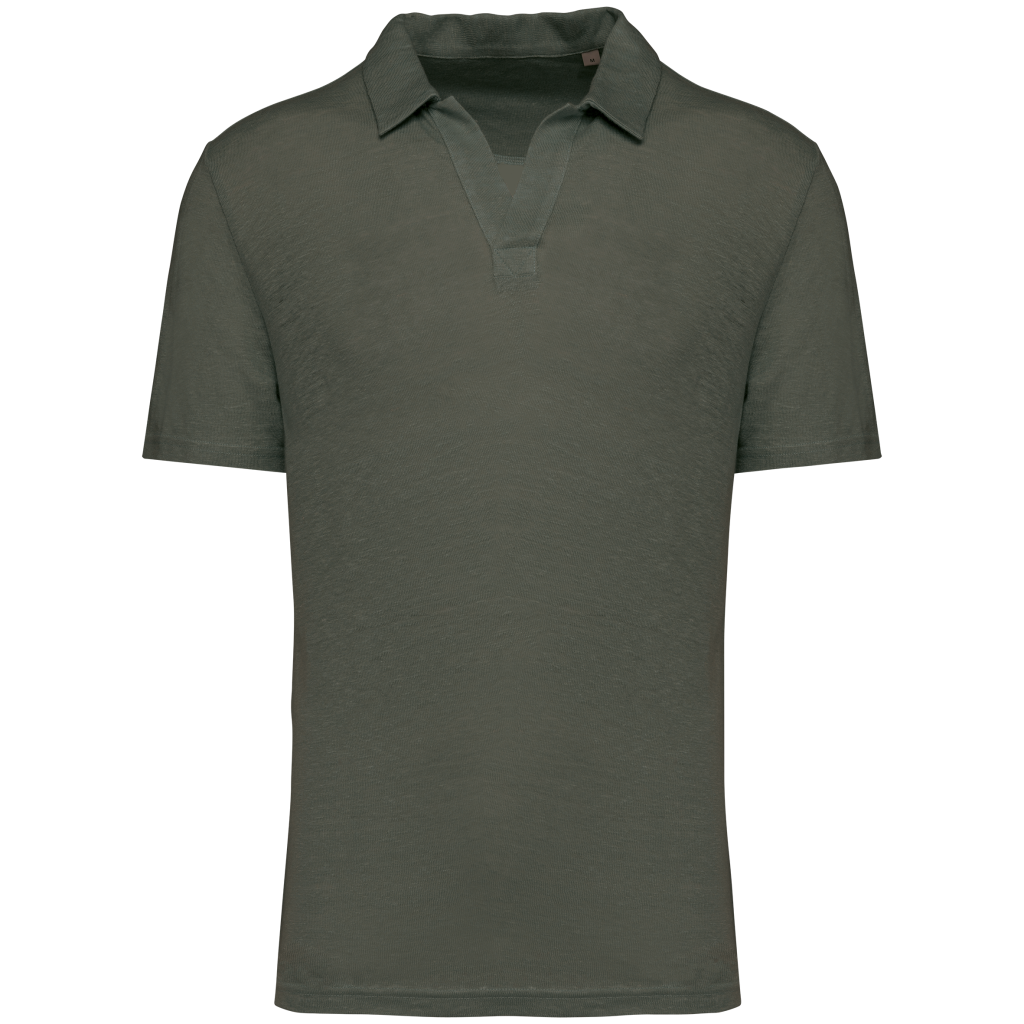 100% linnen. Fitted pasvorm. Polokraag met staander en V-hals met knooplijst zonder knoop in de hoofdstof. Dubbel stiksel aan de manchetten en de zoom. Zijsplitten met aan de binnenkant nektape in de hoofdstof. Halvemaan op de achterkant.
